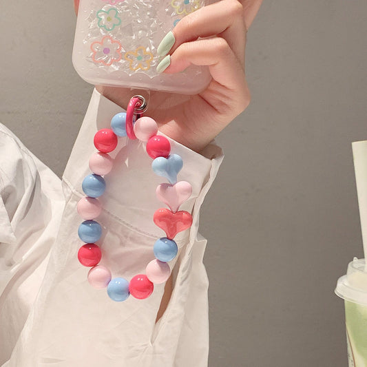 Heart Bead String Mobile Phone Charm Keychain